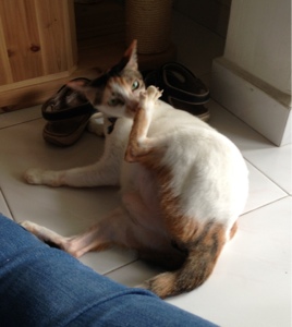 Since I am a cat who lives indoors I do not have any business outside and so here I am with san on grandma's room where we had the A/C on. If not the whole house would be too hot. BUT that is no reason ...