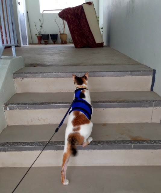 Oh Akira, you are going on adventures now. What fun! And stairs too. Meow, jessica