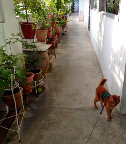 My bruffer Bujang went for an early walk. The morning sun was out already at about 8.45. He was at first nervous but got over it quite quickly.